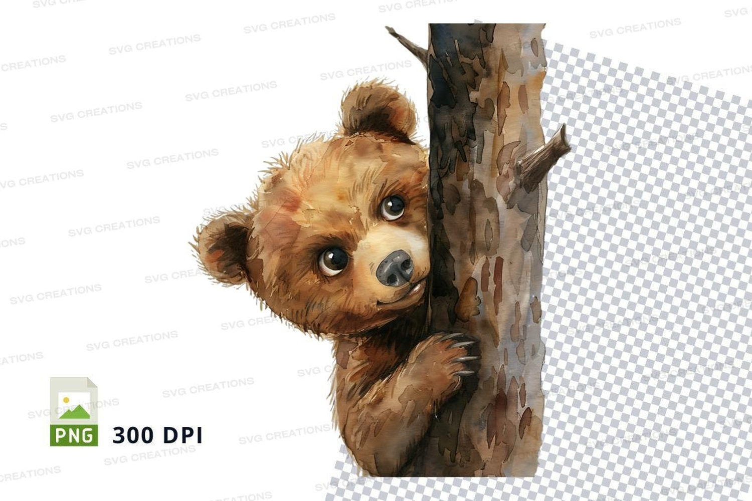 Similar Design Products to Cute brown teddy bear hugging wooden log clipart PNG