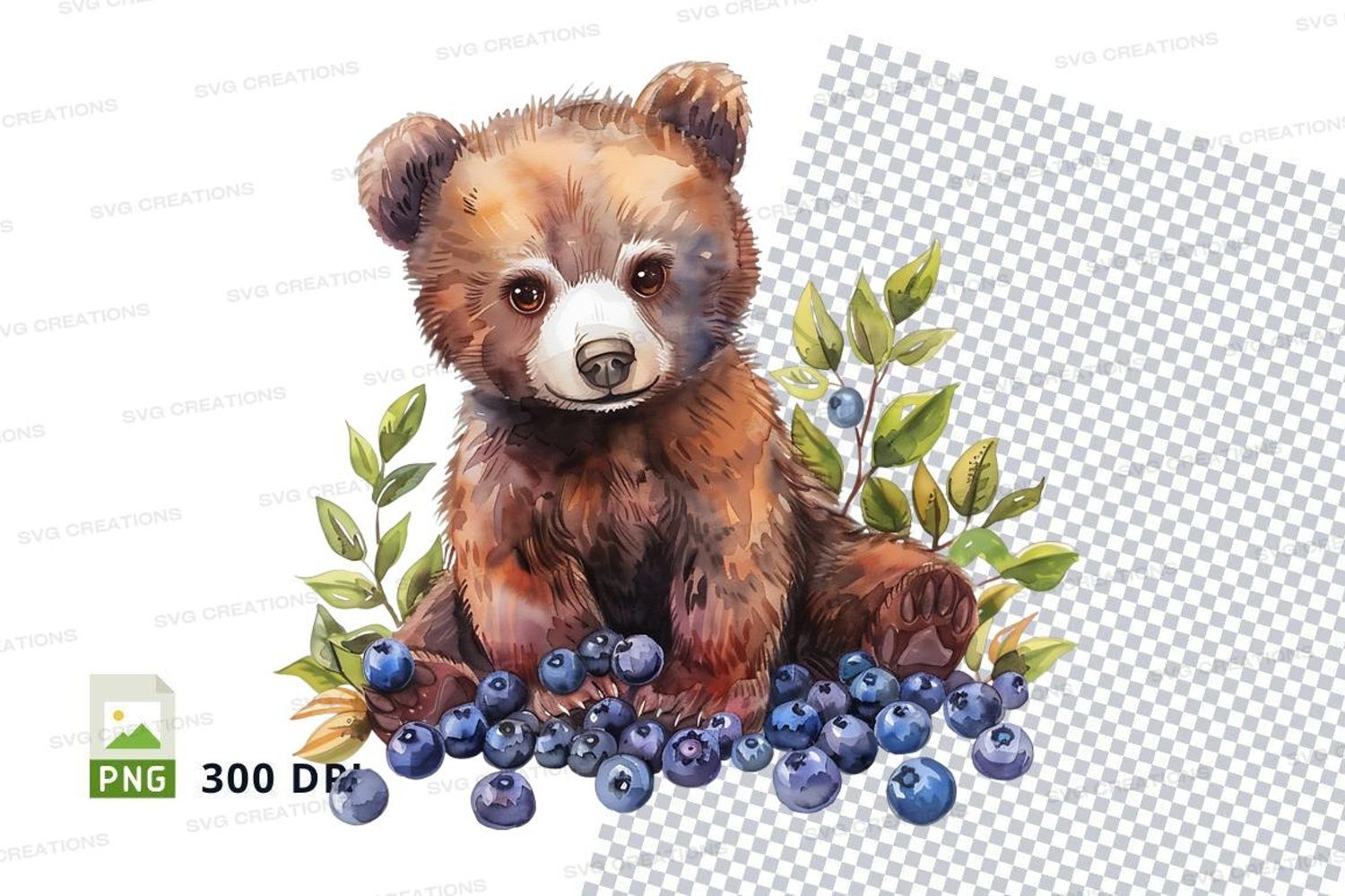 Similar Design Products to Cute brown bear clipart with blueberries on checkered cloth