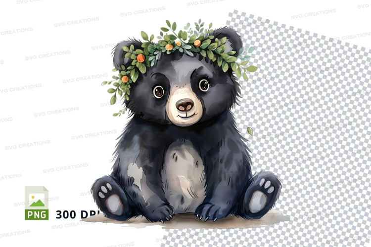 Cute bear clipart with floral crown sitting isolated on whit example image 1