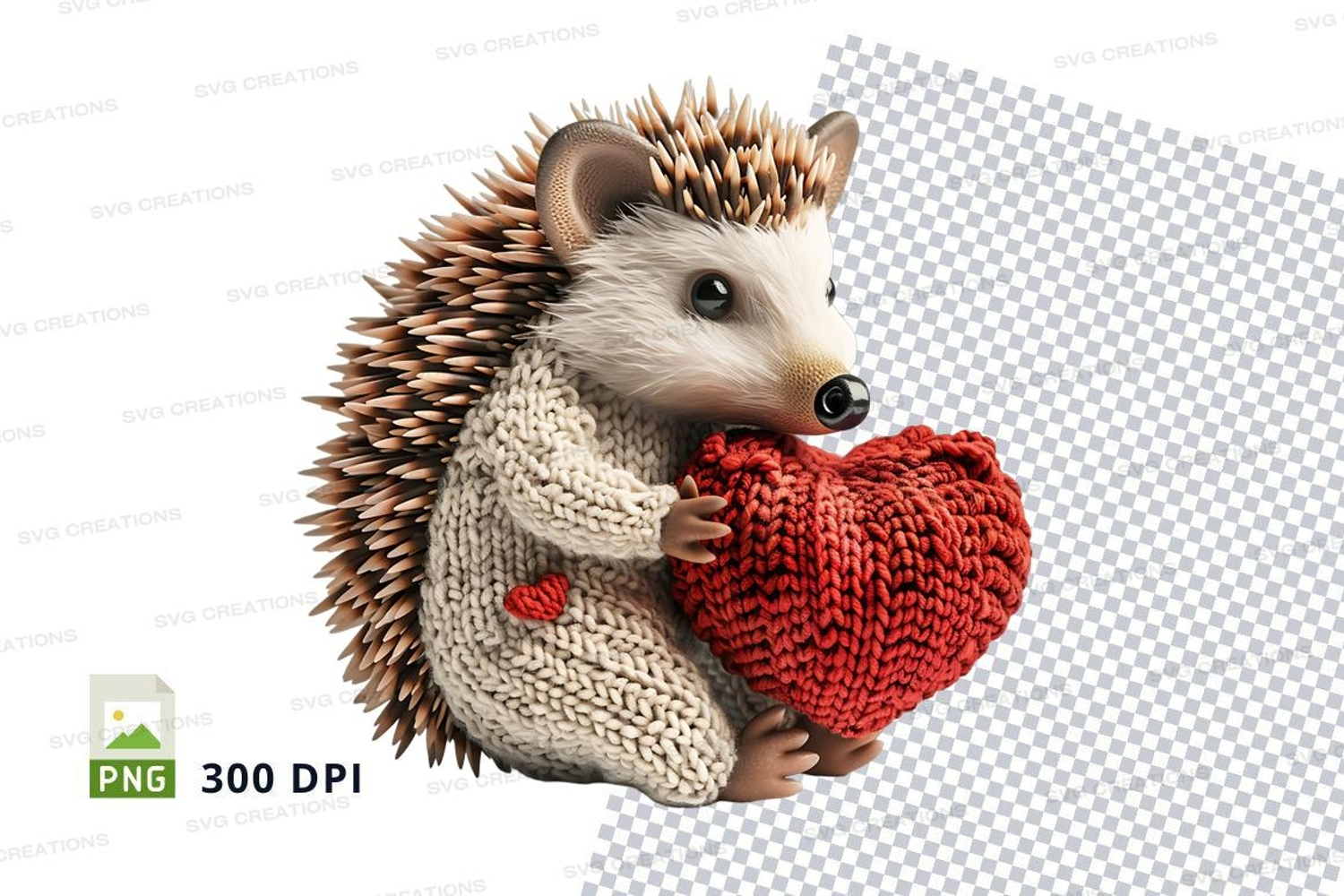 Cute hedgehog holding red heart knit clipart PNG example image 1