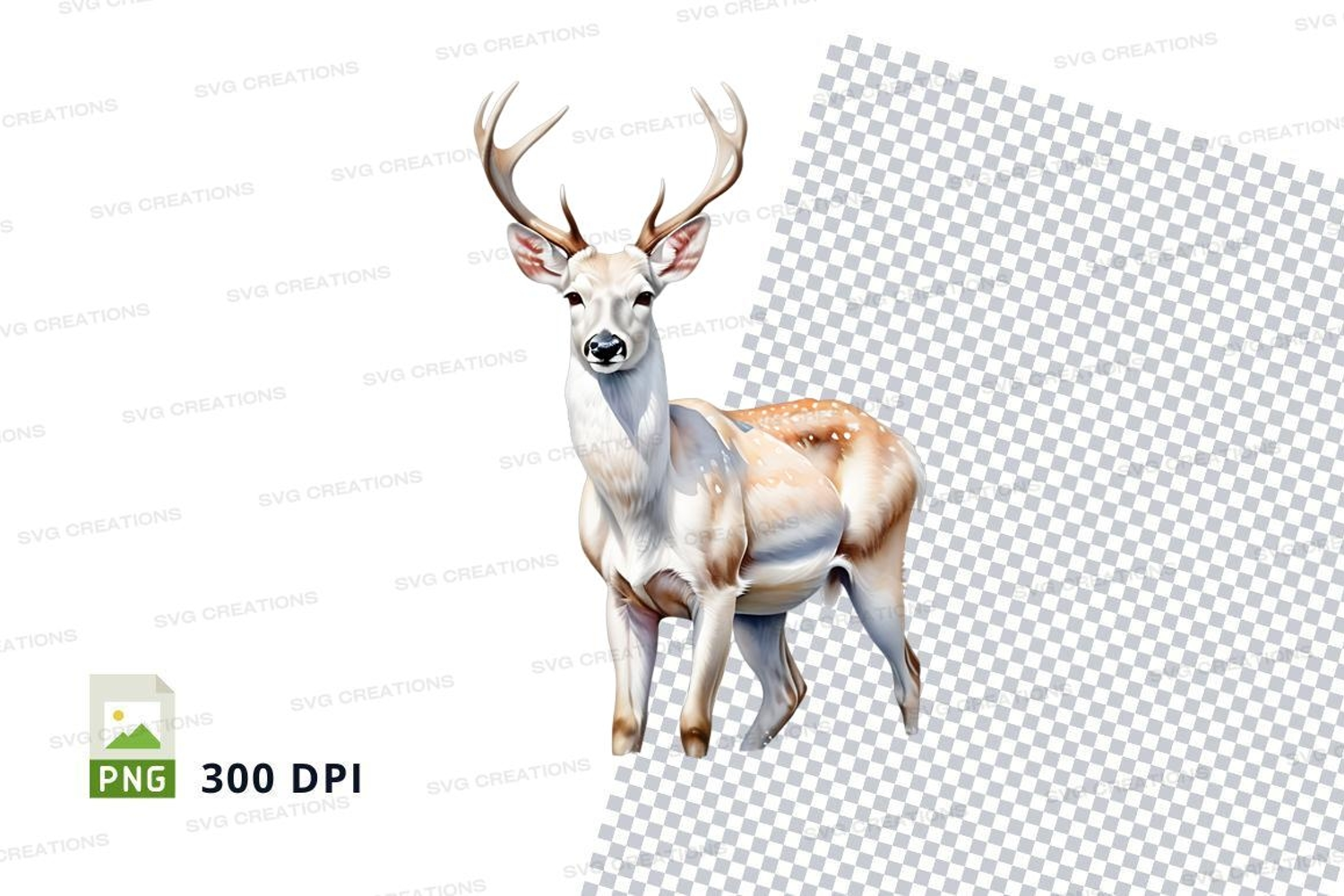 White reindeer clipart isolated on transparent background PN example image 1