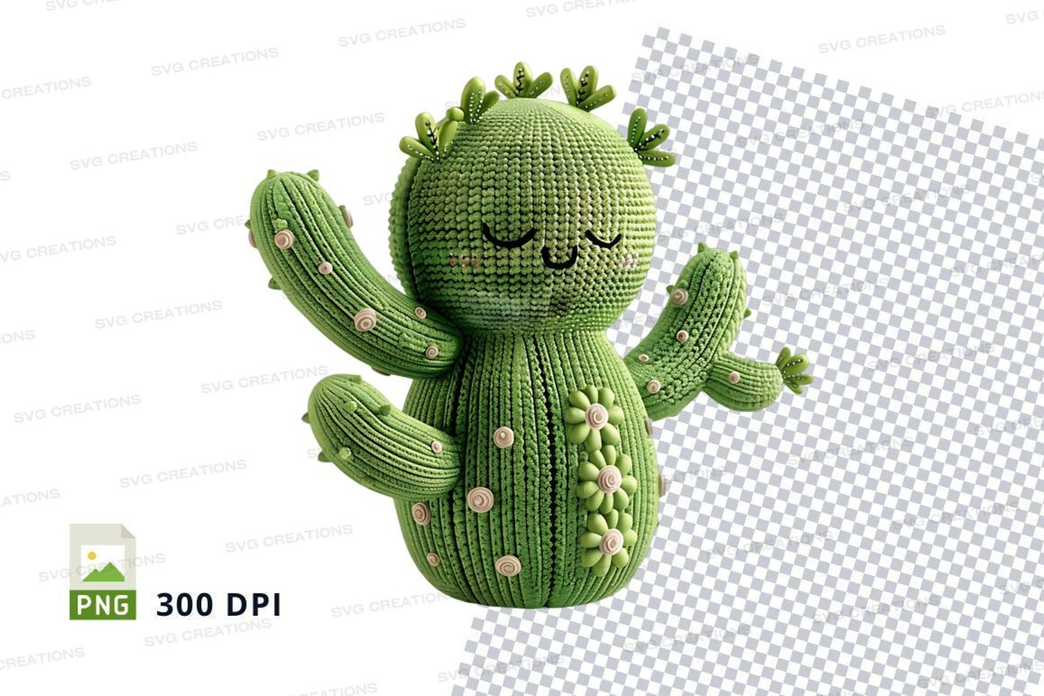 Cute cactus crochet toy smiling green handmade clipart PNG example image 1