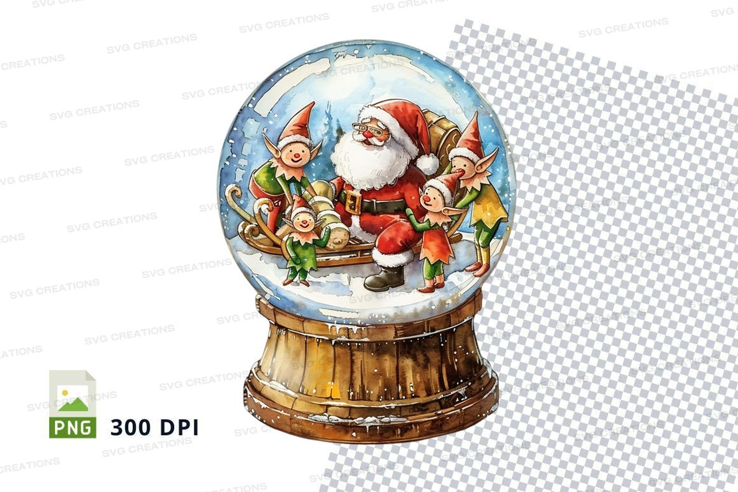 Christmas snow globe with Santa and reindeer clipart PNG example image 1