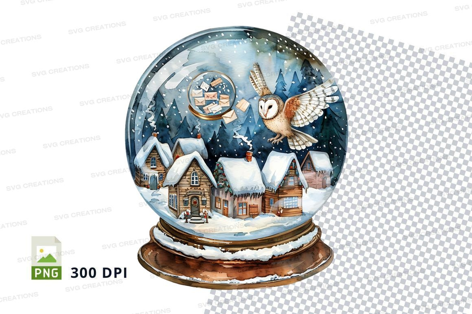 Christmas snow globe clipart with house and rabbits example image 1