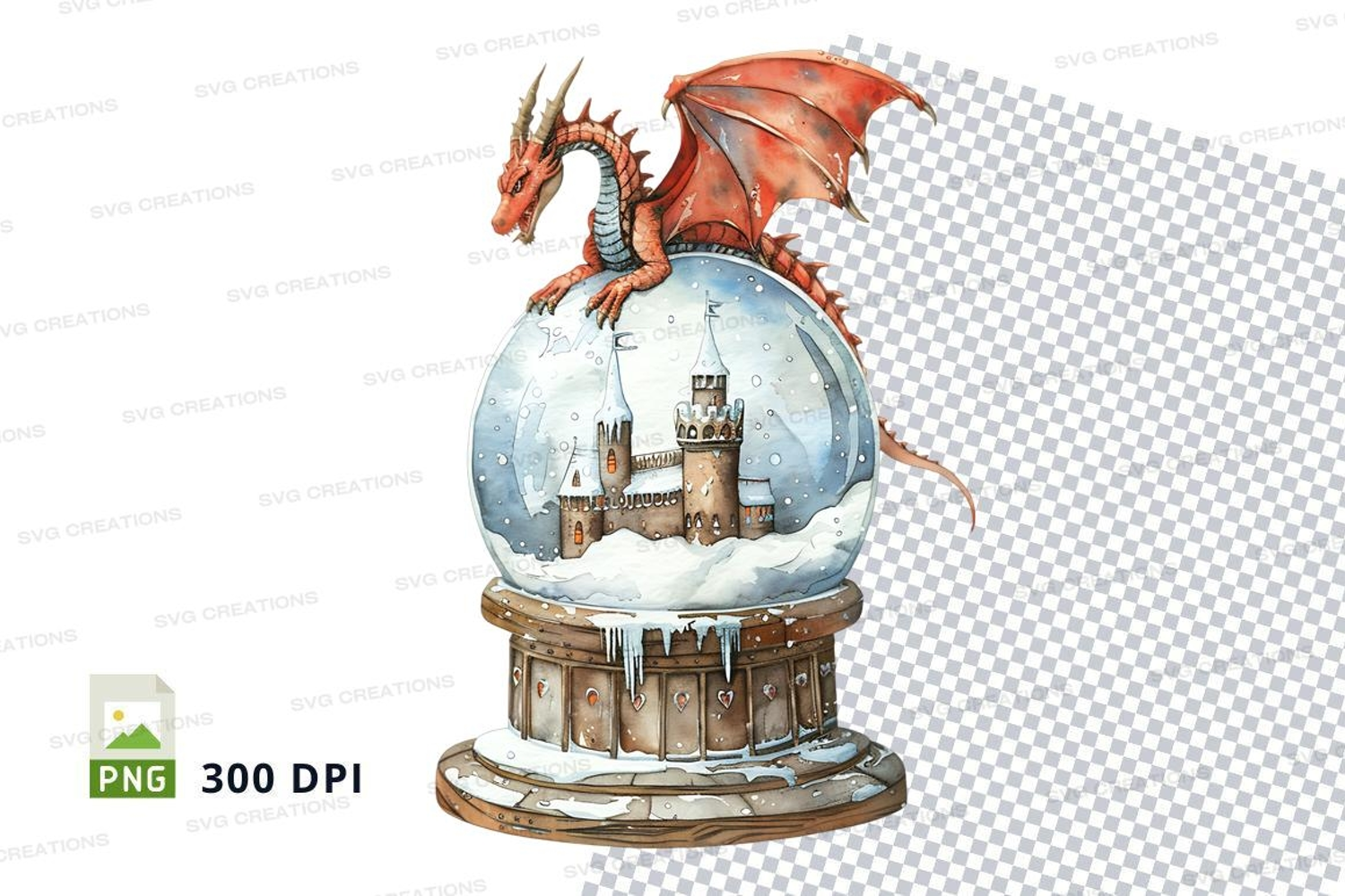 Similar Design Products to Dragon in snow globe fantasy clipart illustration