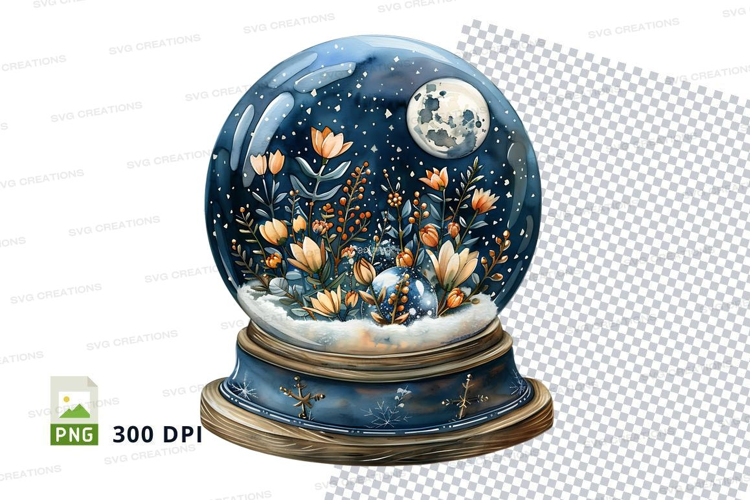 Crystal snow globe with moon and lotus flowers clipart png example image 1