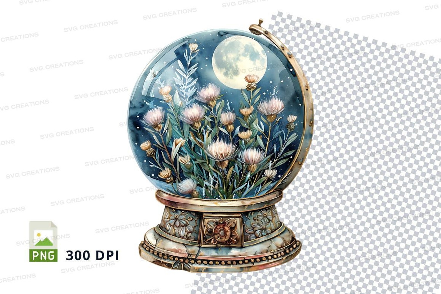 Similar Design Products to Crystal ball with blooming flowers and moonlit garden clipar