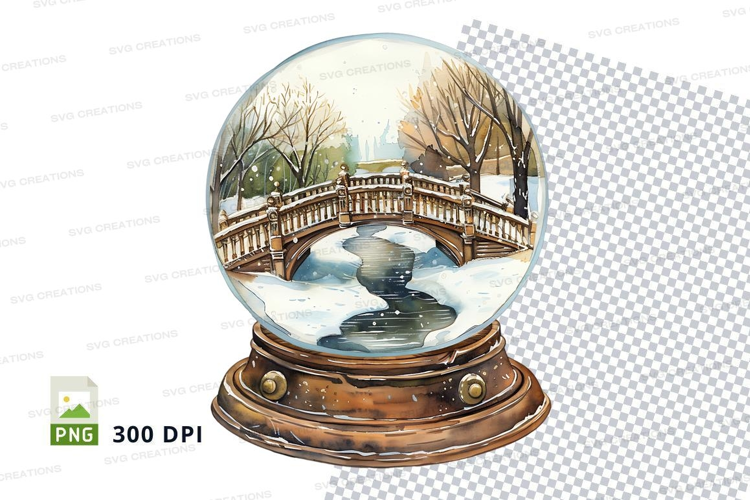Snow globe clipart with bridge and winter landscape scene example image 1