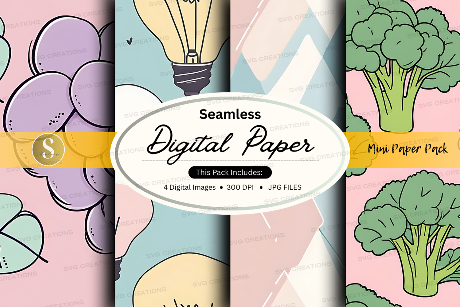 Seamless digital paper pack with lightbulb and broccoli text example image 1
