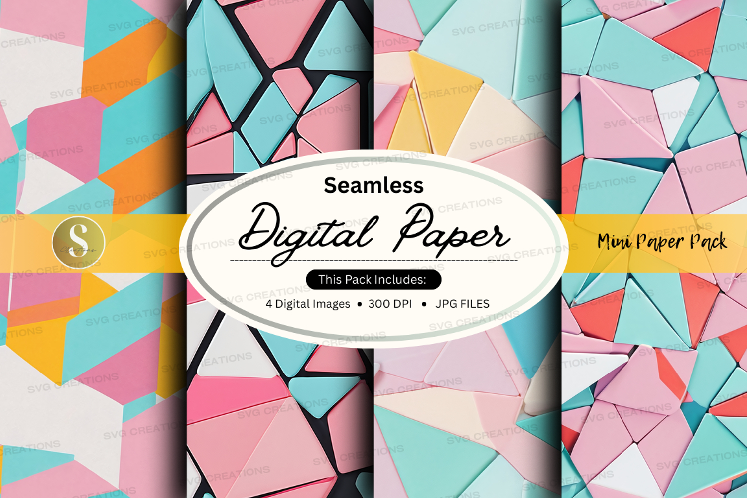 Seamless digital paper pack colorful geometric patterns desi