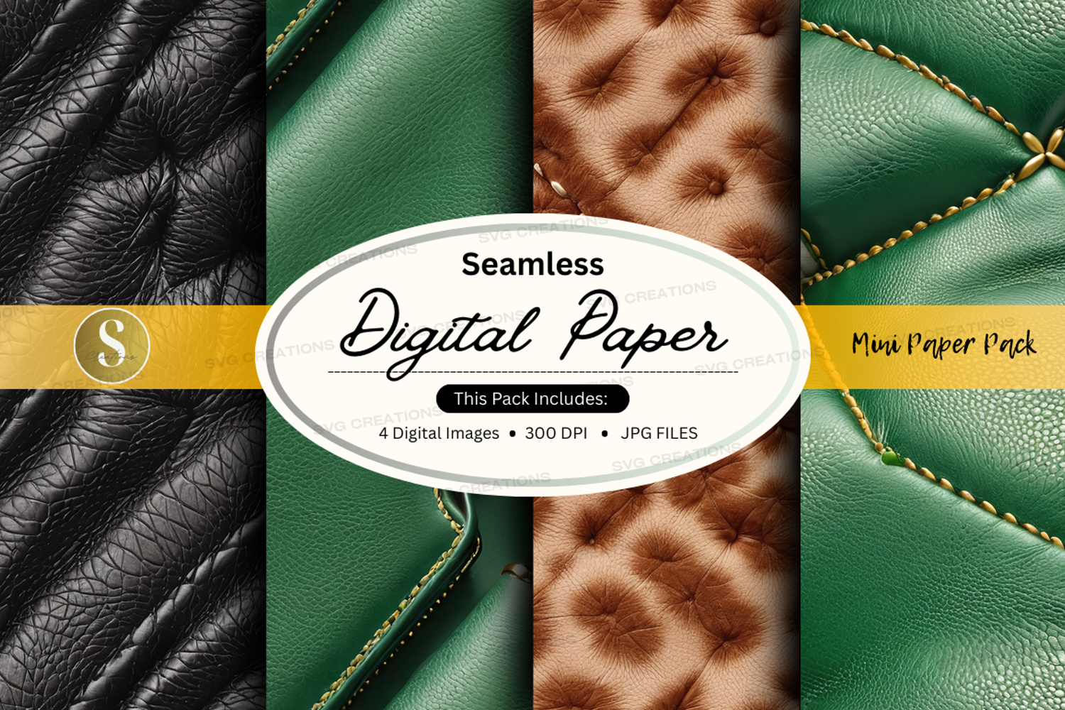 Seamless digital paper texture green leather mockup design t example image 1