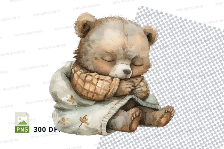Cute sleeping teddy bear clipart in pajamas peaceful rest example image 1