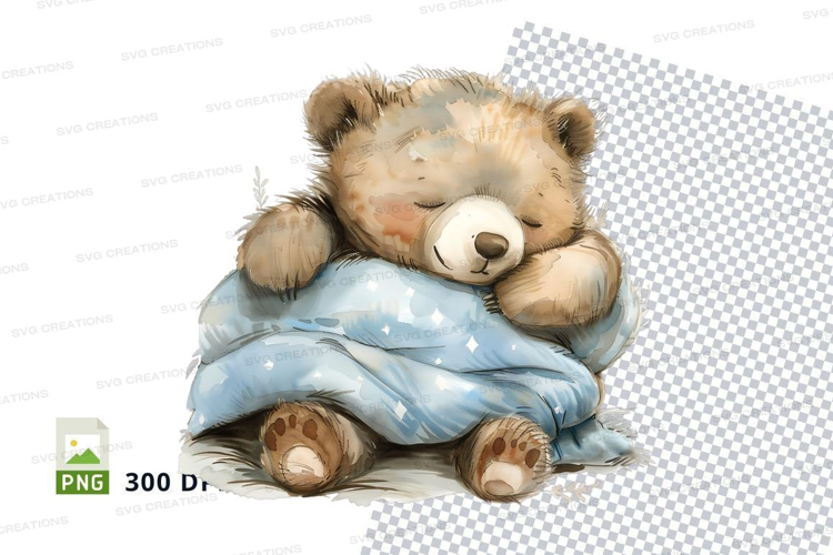 Bear Clipart Blue Png Toy Teddy Sleeping Plush Pajamas Bedding
