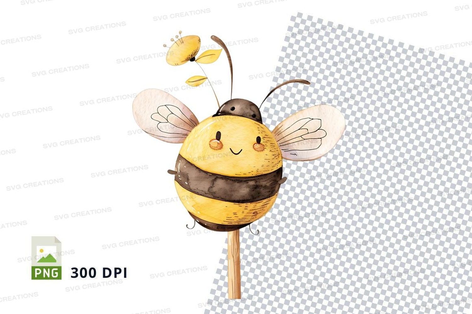 Similar Design Products to Cute cartoon bee flying on transparent background clipart