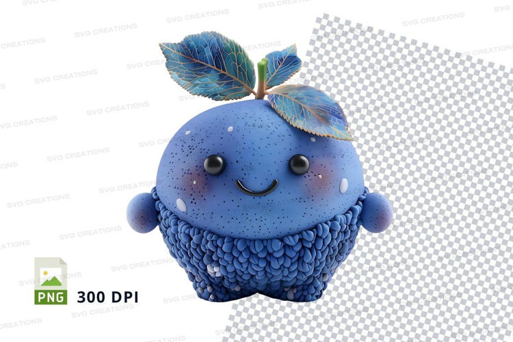 Cute blueberry clipart smiling fruit character PNG 300 DPI example image 1