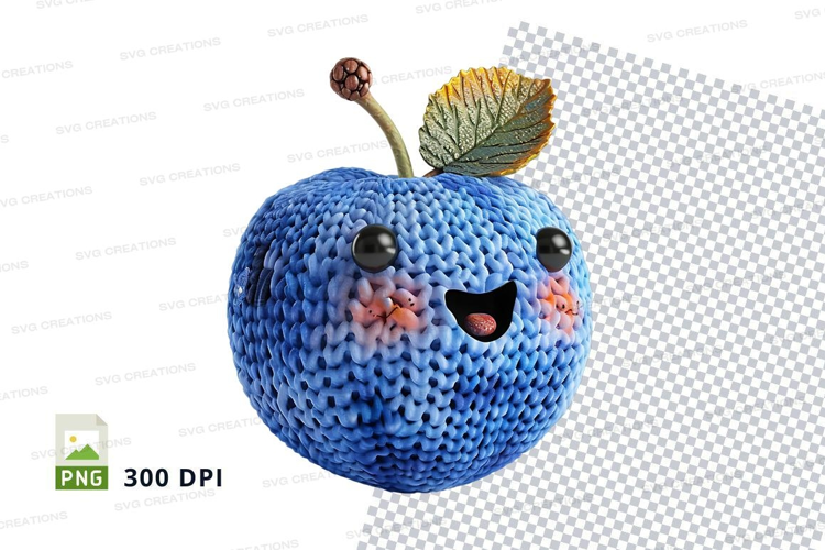 Similar Design Products to Cute knitted blue apple clipart with smiling face and leaf