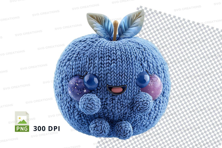 Blue knitted apple clipart with butterfly and beads PNG example image 1