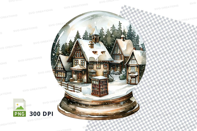 Snow globe winter village clipart transparent PNG 300 DPI example image 1