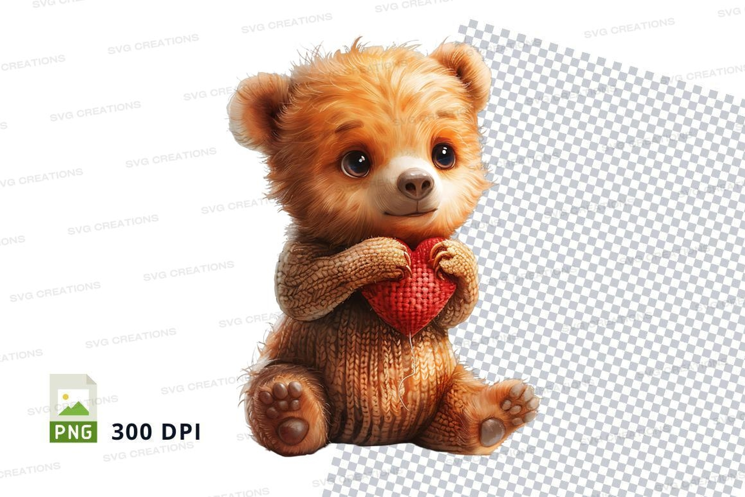Cute teddy bear holding heart clipart transparent PNG example image 1
