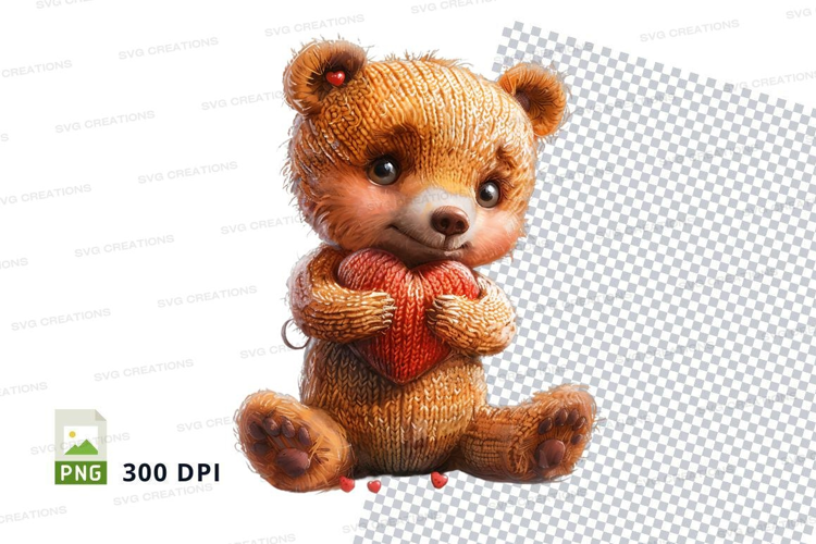 Cute knitted teddy bear clipart sitting red scarf PNG example image 1