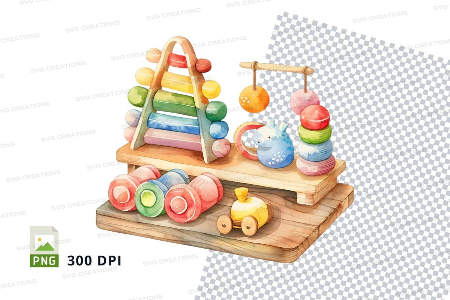 Colorful wooden abacus and toys clipart on white background example image 1