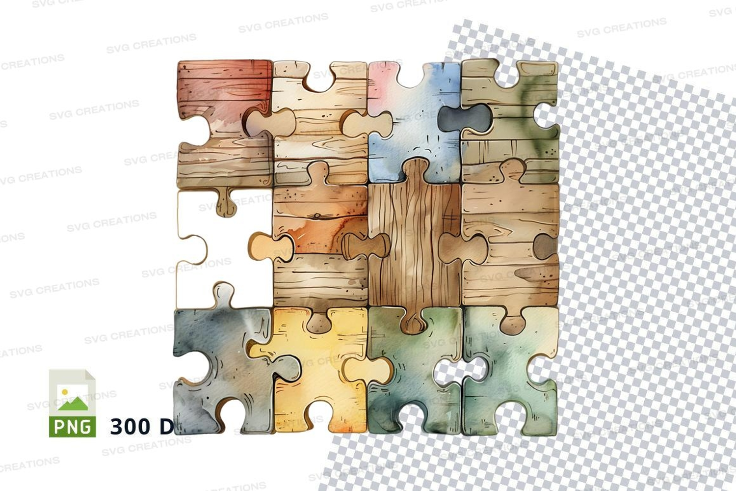Wooden puzzle pieces clipart PNG 300 DPI interlocking blocks