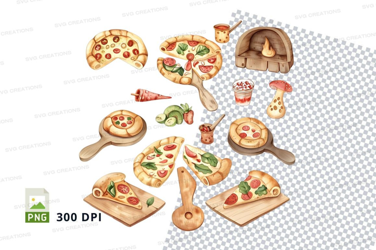Colorful pizza clipart set on checkered tablecloth 300 DPI P example image 1
