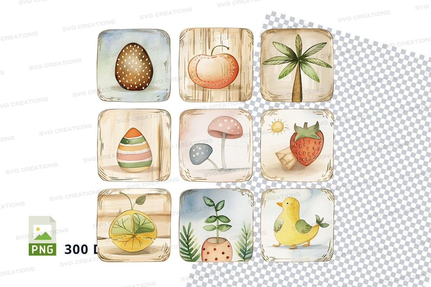 Cute food fruit clipart set transparent PNG summer icons example image 1
