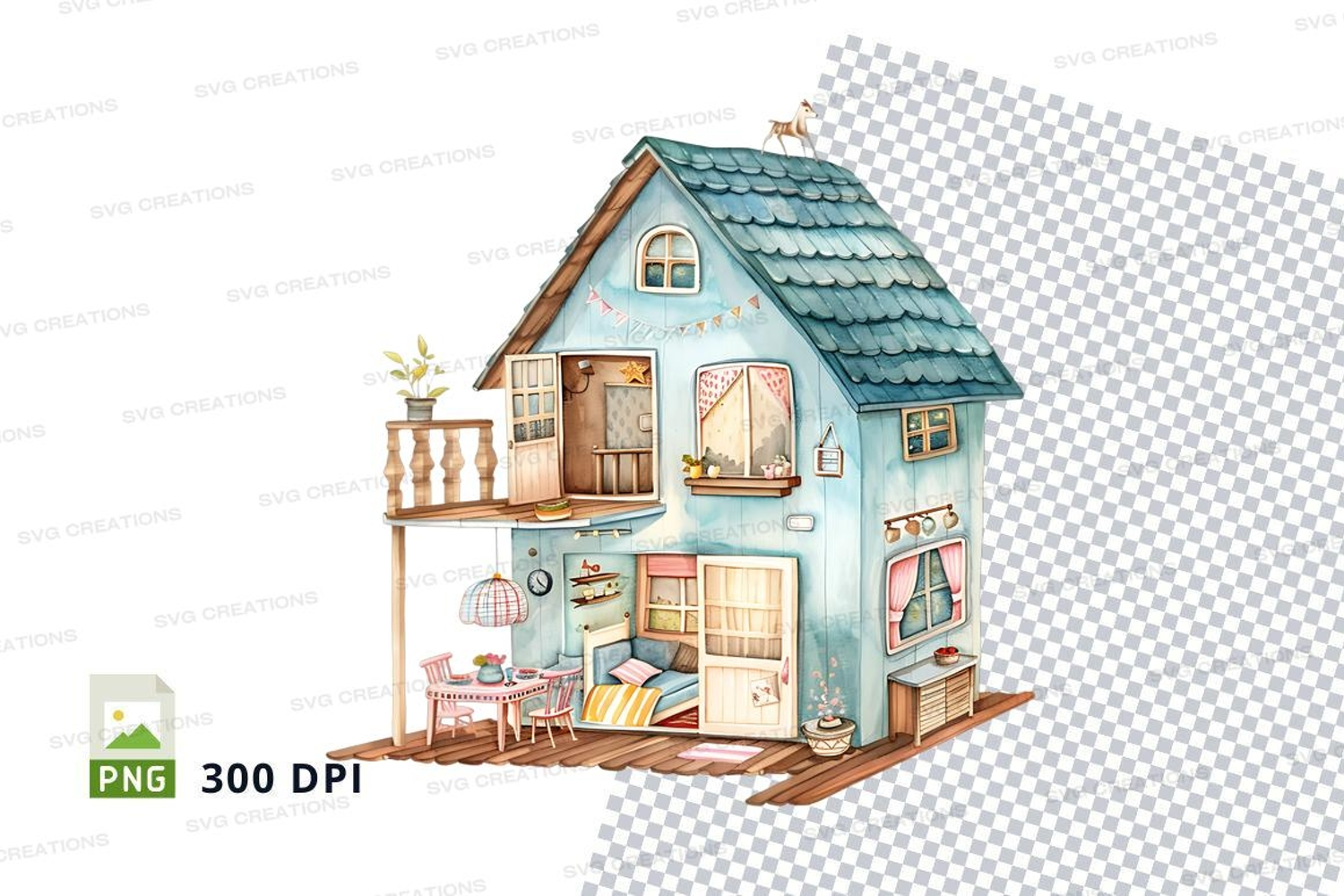 Similar Design Products to Cute wooden dollhouse clipart interior design 3D PNG