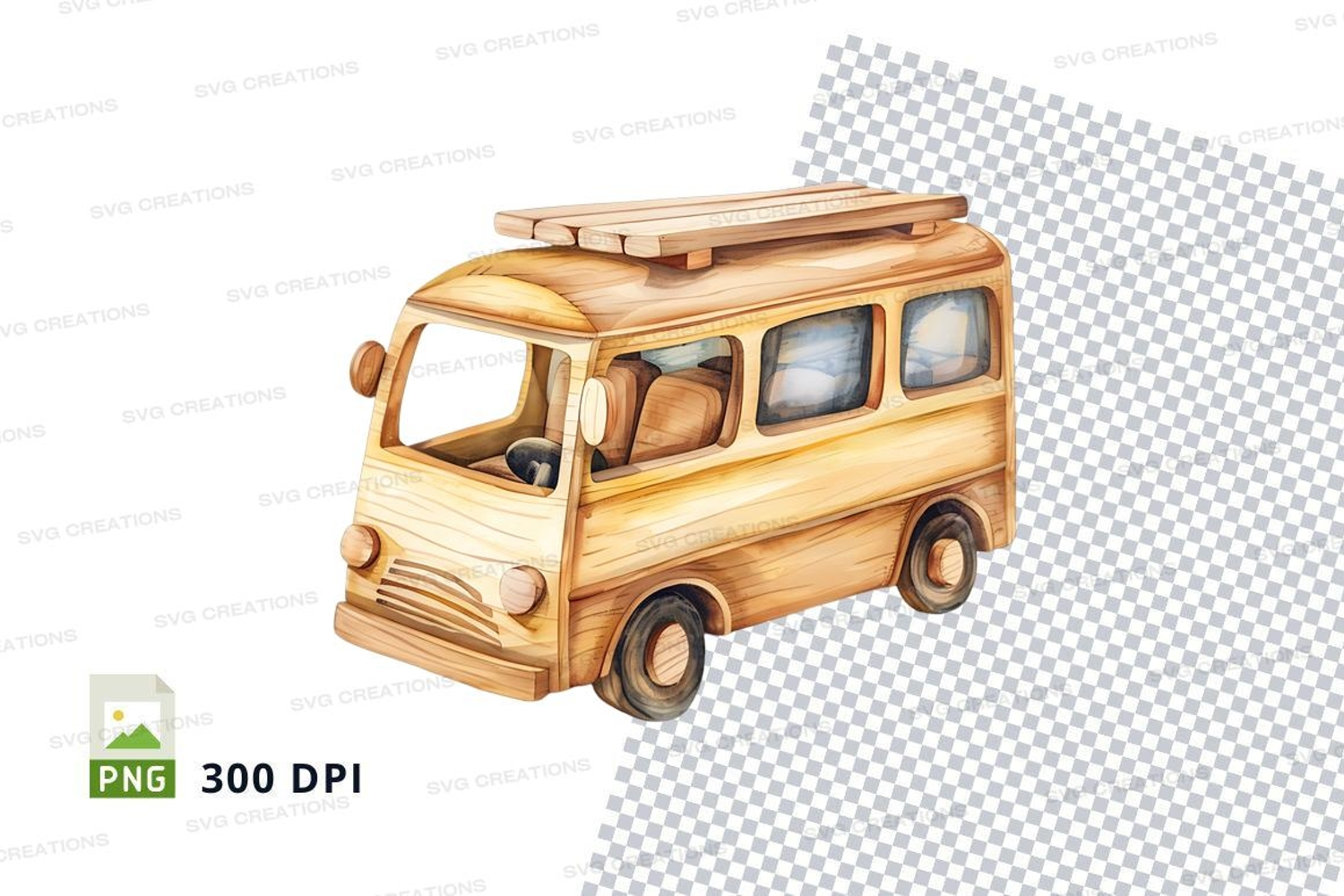 Vintage wooden camper van clipart isolated on white backgrou example image 1