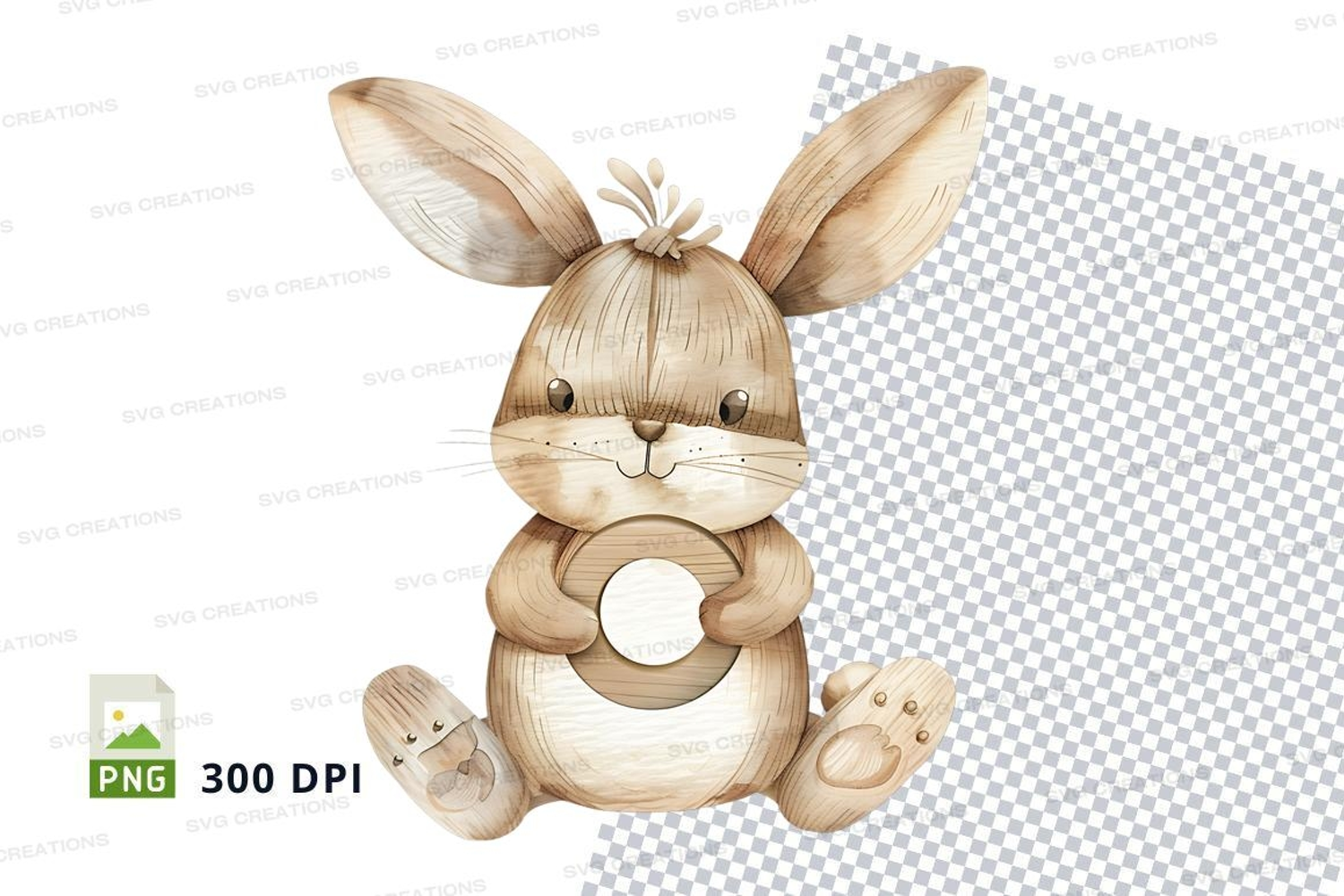 Similar Design Products to Cute brown bunny clipart holding donut on checkered backgrou