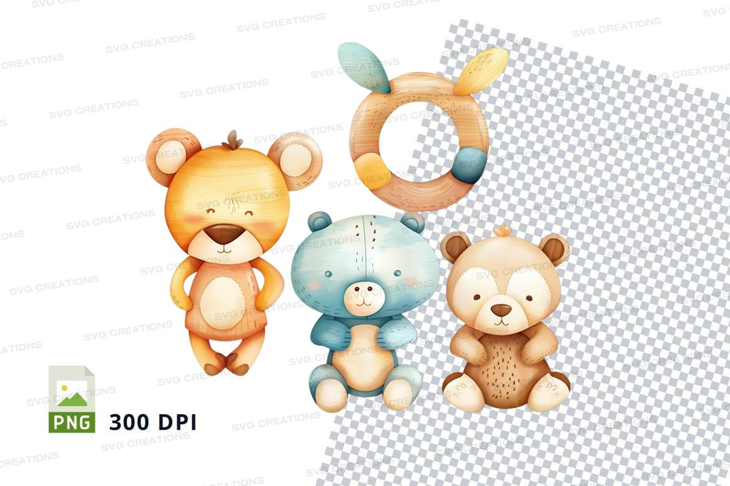 Cute teddy bears clipart set with teether and baby toys example image 1