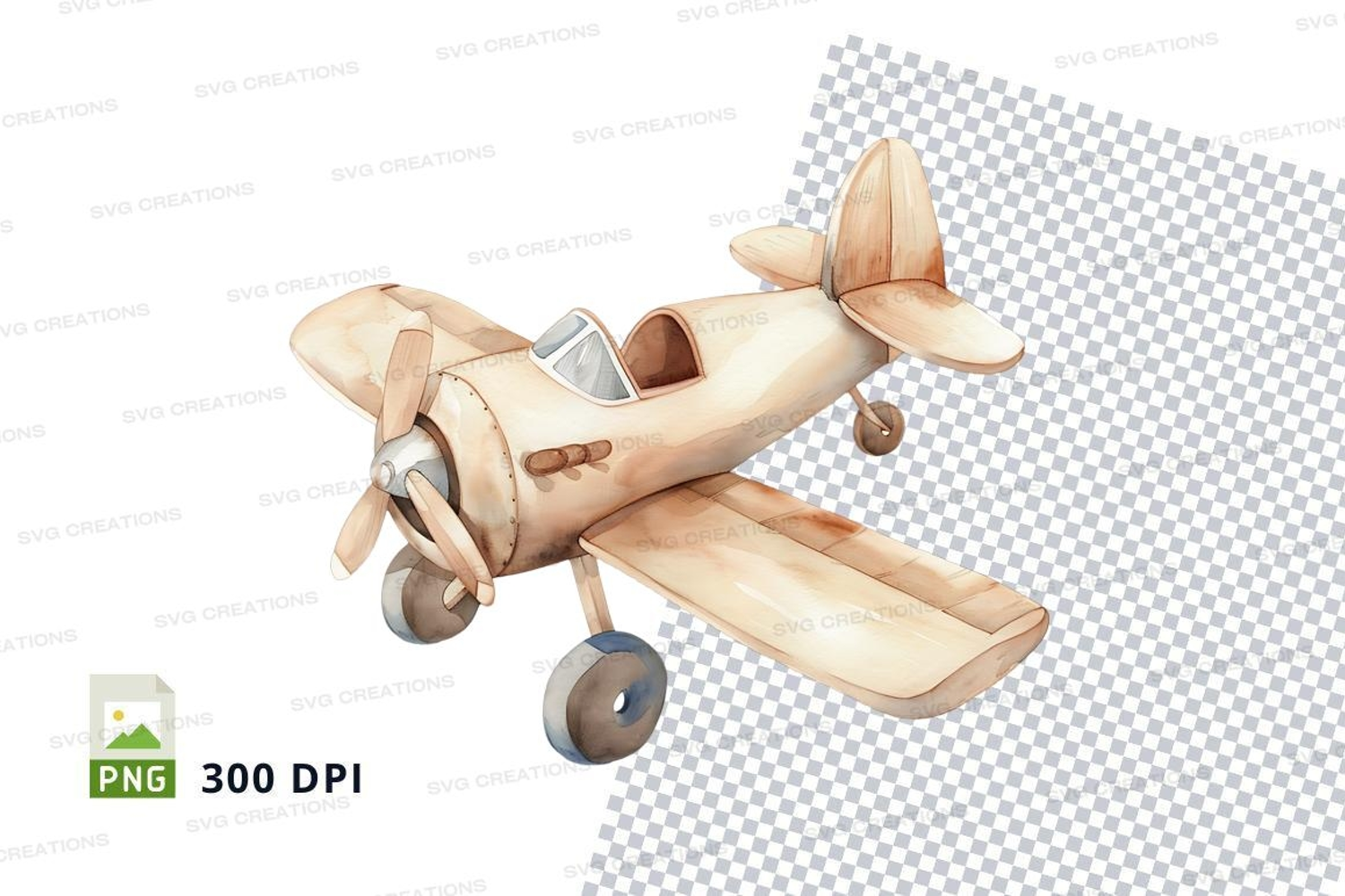Vintage wooden biplane clipart png transparent background example image 1