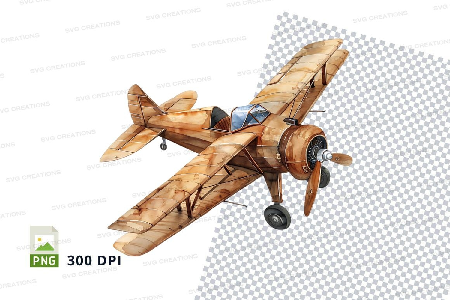 Vintage wooden biplane clipart PNG transparent background example image 1