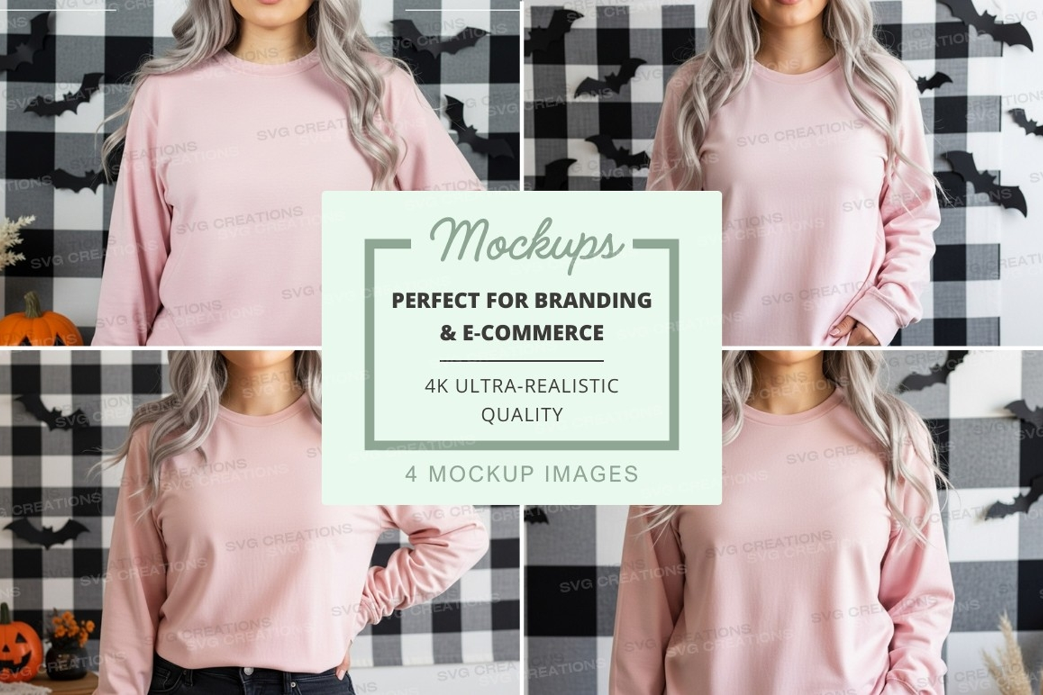 Similar Design Products to Woman pink sweatshirt mockup checkered background fall
