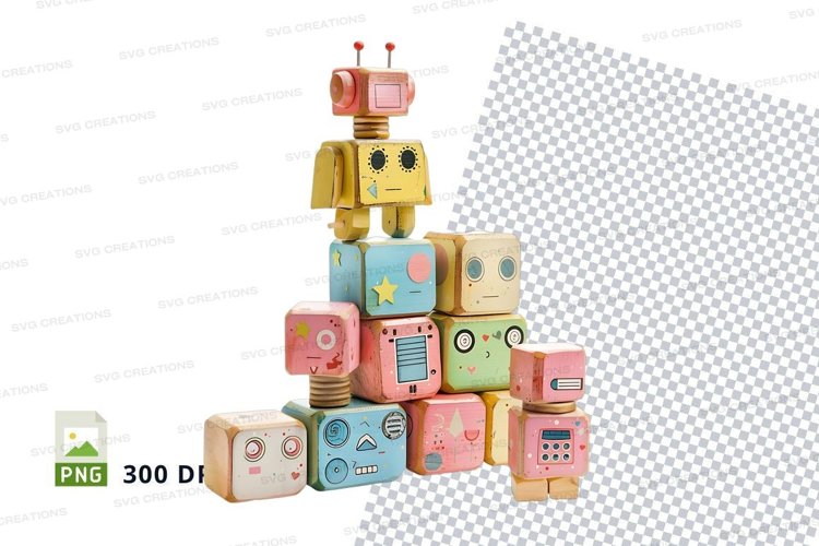 Colorful wooden robot clipart stack playful design transpare example image 1
