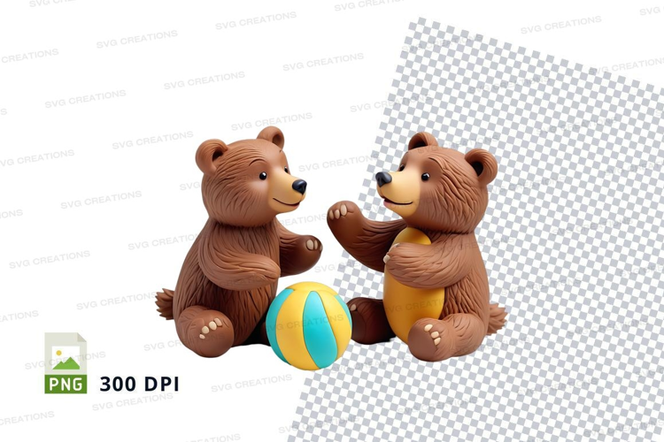Similar Design Products to Two brown teddy bears hugging colorful toy on white backgrou