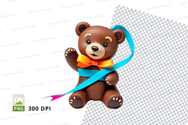 Cute brown teddy bear waving with colorful scarf clipart png example image 1