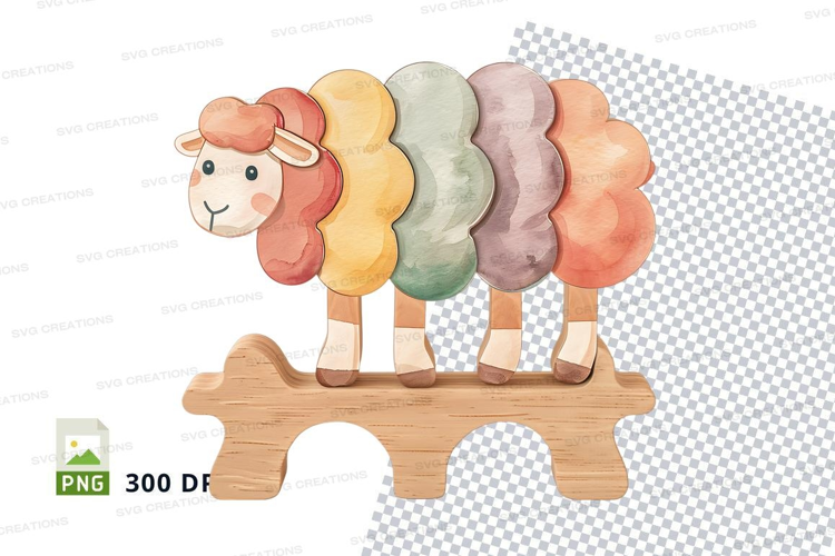 Colorful wooden sheep clipart on checkered background example image 1