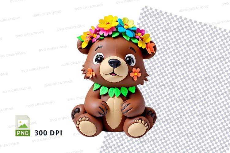 Cute teddy bear clipart with floral headband and bow sitting example image 1