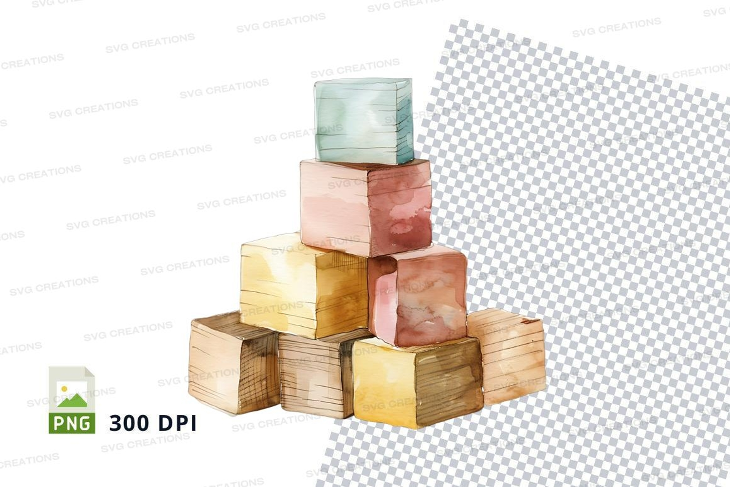 3D gold pink wooden blocks stack clipart transparent backgro example image 1