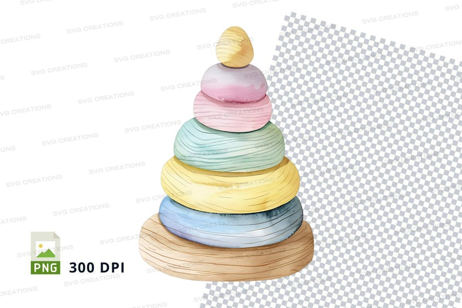 Colorful wooden stacking rings toy clipart transparent PNG example image 1