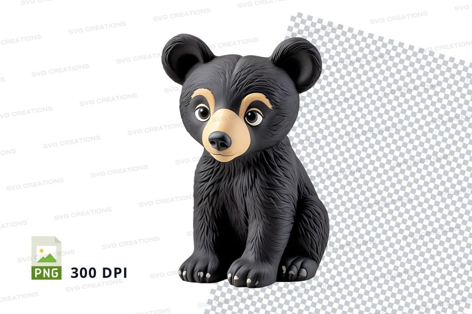 Cute black bear cub clipart PNG high resolution 300 DPI example image 1