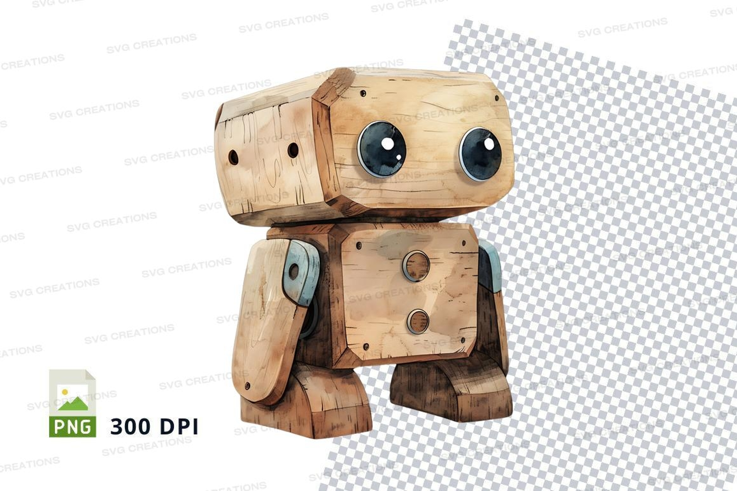 Wooden robot clipart isolated on white background 300 DPI example image 1
