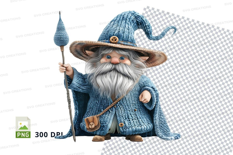 Cartoon gnome wizard holding magic staff clipart PNG example image 1