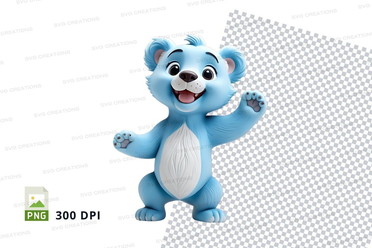 Cute blue cartoon bear waving isolated on white background c example image 1