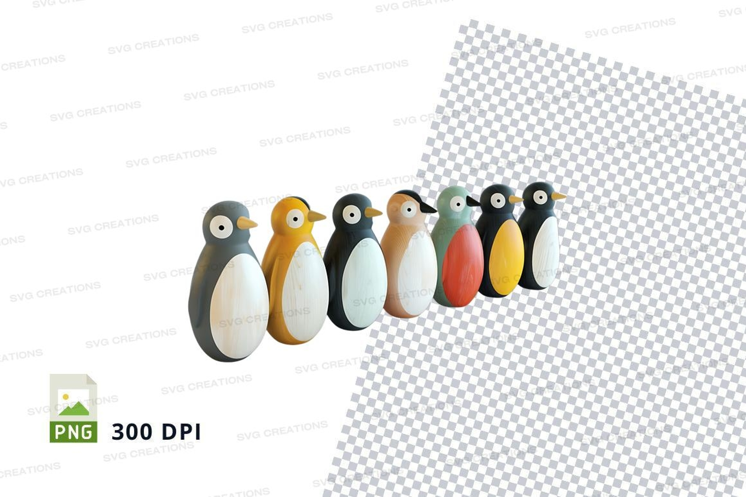 Colorful penguin clipart set on transparent background 300 D example image 1