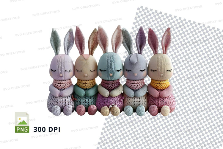 Easter bunny clipart set colorful knitted toy decoration example image 1