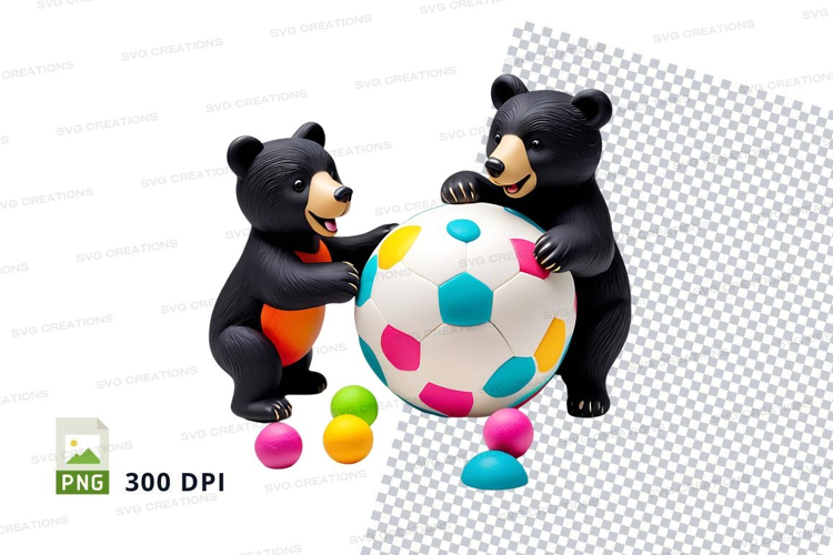 Cute cartoon bears playing with colorful ball clipart PNG example image 1