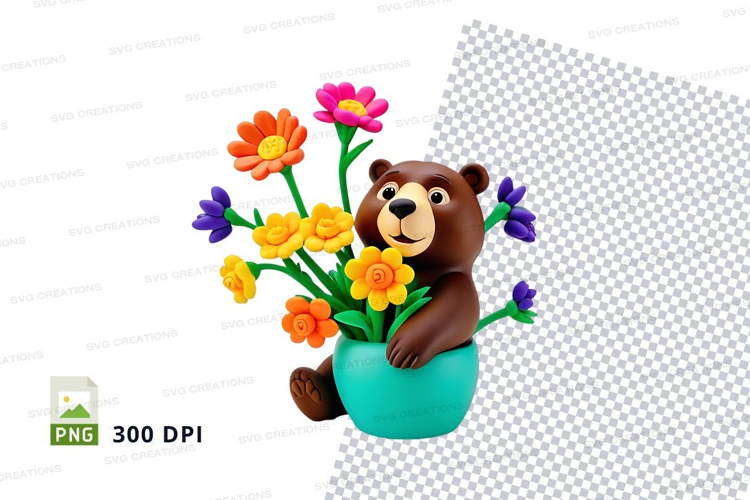 Cute Colorful Flowers Bear Clipart Brown Blue Bouquet Teddy Pot